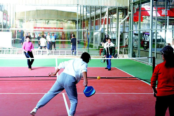 “它像是羽毛球、乒乓球和网球的‘集合体’。”刘辉比划着说,匹克球最突出的特点是“包容”。场地相对较小、跑动范围有限,但能很好地锻炼反应、协调和战术思维;利用现有羽毛球场地即可快速改造,器材也亲民。更重要的是,“从孩子到老人,一家三代都能一起上场,一边打球一边交流,这是很多运动很难做到的。”