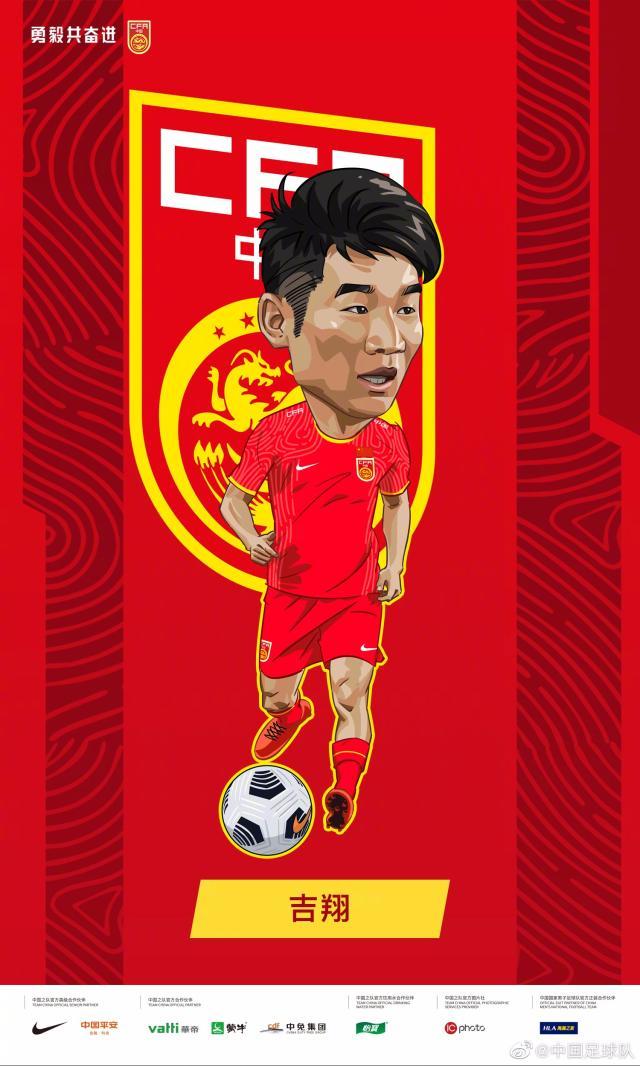 6月1日,中国足球队官方官宣补充征调山东泰山足球俱乐部吉翔、刘彬彬,长春亚泰足球俱乐部谭龙。